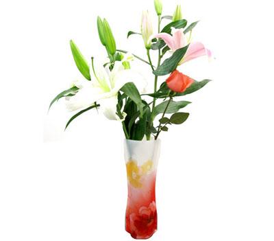 Foldable flower vases (Collapsible flower vase) , which can be naturally expanded when filled in enough water , characterize in properties like unbreakable , accessible to offices , homes , hospitals , hotels and other places . Then insert the flower . Shanghai Materials specialize in manufacturing plastic collapsible vases for OEM and ODM .
