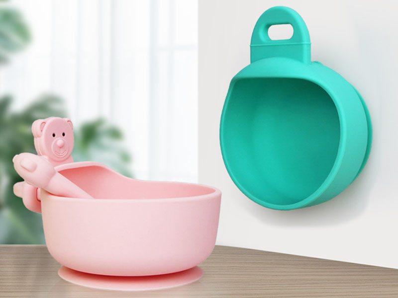 The silicone suction bowl and spoon are made from food grade 100% silicone material. It is soft and pleasant to touch ,with no risk for babies and kids. The tableware sticks to the table (or high chair tray), thus avoiding daily spilling incidents.