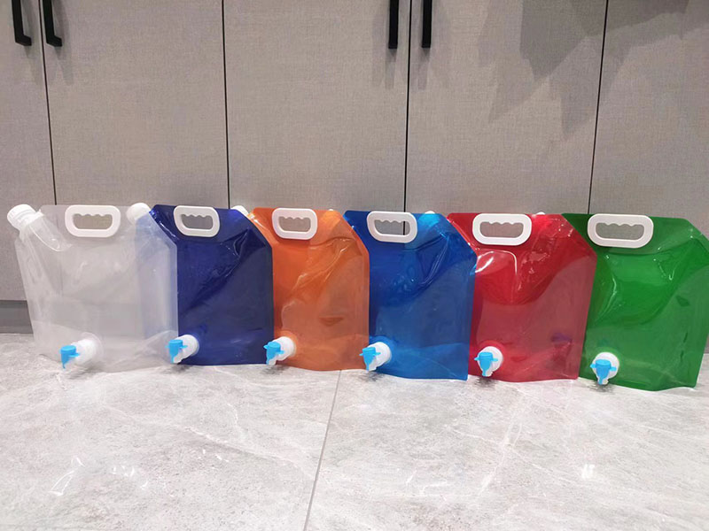 We provide bulk collapsible water pouches with large capacity portable foldable spouted stand up pouch Bag with spout 5L 10L Plastic Camping stand up BPA foldable water bags(reusable water pouches). Which widely used in juice, mineral water, tea, other Beverage.